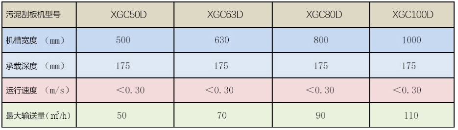 XGC垂直型濕污泥刮板輸送機(jī)主要技術(shù)參數(shù)表(含水率大于60%)
